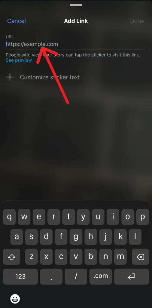 Step 6: Enter the link of the Youtube video that you want to share in the URL text field and tap on Done.